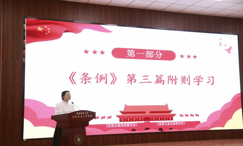 为深入贯彻落实全面从严治党要求,强化党员纪律意识,提高党员遵守党纪的自觉性,中国语言文学学院本科生第四党支部于2024年5月22日在文科4号楼国学讲堂开展支部书记讲党课活动。本次党课旨在通过支部书记的详细解读,使全体党员深刻领会《中国共产党纪律处分条例》(以下简称《条例》)的精神实质和具体要求,为营造风清气正的党内政治生态打下坚实基础。本次活动由中国语言文学学院本科生第四党支部书记何丹老师主持。