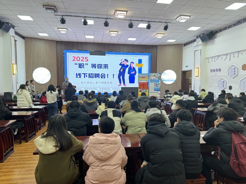 为积极响应国家关于高校毕业生高质量充分就业的号召,进一步促进2025届毕业生实现高质量充分就业,搭建用人单位与毕业生良好沟通平台,精准对接“学科专业”与“单位专岗”,2025年3月12日上午11点,中国语言文学学院联同数学科学学院、马克思主义学院、外国语学院于新疆师范大学温泉校区国学讲堂共同举办了“双向奔赴,携手同行——‘职’等你来”第十师教育局线下专场招聘会。
