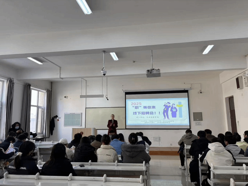 为充分利用 2025 届毕业生“春季黄金就业期”,有效应对外部环境和国内经济运行变化对就业的影响,促进高校毕业生学业困难、家庭经济困难等重点群体就业,中国语言文学学院于 2025 年 3 月 28 日联合和田地区民丰县教育局开展“创启新程,职达梦想”招聘宣讲会。民丰县教育局就业负责人依帕尔古丽,中国语言文学学院与历史与社会学院就业专干及我校物理、化学、汉语言文学、地理、思政等师范类专业25届本科毕业生积极参加宣讲会。