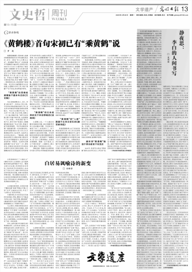 《光明日报》 | 夏国强: 静夜思:李白的人间书写