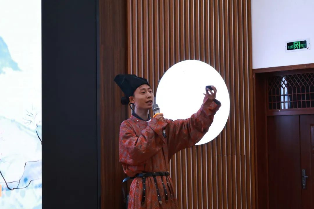 在诗词讲解中同学为大家讲解了唐代的《出塞》《送元二使安西》《山居秋暝》和宋代的《苏幕遮・燎沉香》。诗词讲解和服饰的故事呈现了服饰背后承载的文化信息,使同学们了解古人的生活状态、情感表达和精神世界,再现服饰礼仪对中华民族文化身份的确认和重塑过程。诗词与服饰的演变都是中华优秀传统文化源远流长、博大精深的璀璨成果,让我们在传统与现代的穿越中找到一幕幕历史的文明与时尚,领略华夏祖先的华彩霓裳。